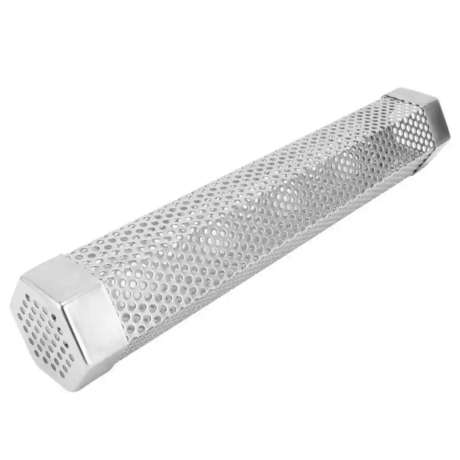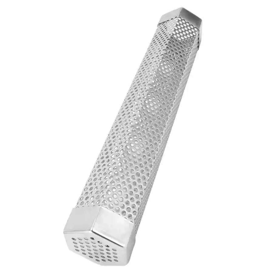 1. Вкус еды можно улучшить через дымовую трубку (до 5 часов горячего и холодного курения).2. Подходит для пищевых древесных гранул, таких как дуб, вишня или просто смешайте их для изысканного вкуса.3. Изготовлен из высококачественной полированной нержавеющей стали, термостойкий, нелегко согнуть или сломать.4. Шестигранная конструкция обеспечивает отличное рассеивание дыма, гарантирует, что он закреплен на месте и не будет кататься в газовых горелках, угле.5. Щеткой, которая достигнет всех углов для эффективного очищения, легко очистить трубку для коптильни.6. Этот компактный аксессуар для гриля подходит для газового гриля, гриля с углем, электрического гриля, подходит для мяса, рыбы, говядины, ребер, бекона и т. д.