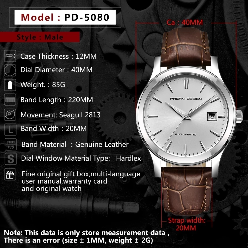 Часы наручные PAGANI Мужские механические, модные водонепроницаемые брендовые автоматические, с кожаным ремешком, 2021