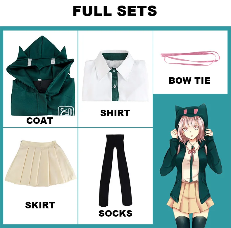 Костюм для косплея школьников, униформа для учащихся средней школы из аниме данганронпа, Нанами и Чиаки, жакет с длинными рукавами, короткая юбка, юбка и парик Оли