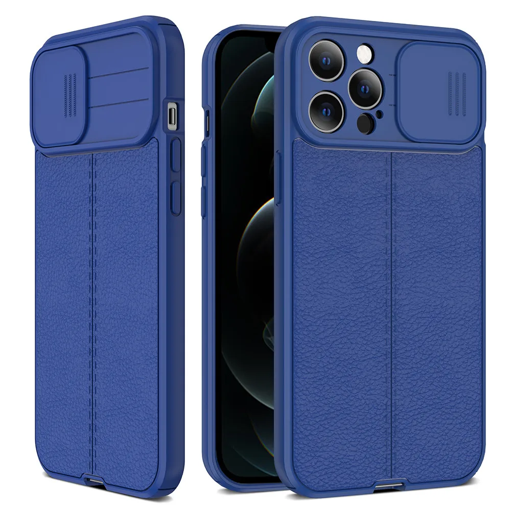 Feature 1Lychee Pattern Leather + Soft Silicone frame + Push slip Camera Protect
