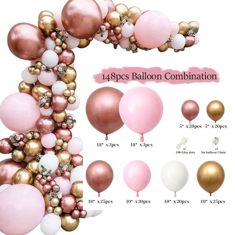 Розовая фотогирлянда с аркой, набор из 152 шт., золотистая латексна...