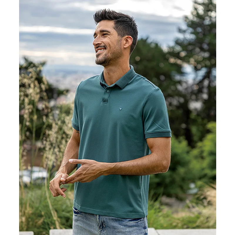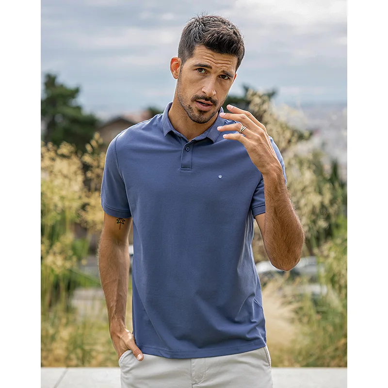 Мужская хлопковая рубашка-поло KUEGOU, однотонная Приталенная футбо...