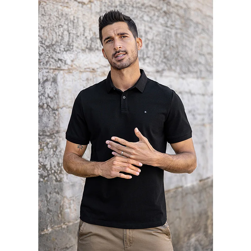 Мужская Однотонная рубашка-поло KUEGOU, черная приталенная рубашка-...
