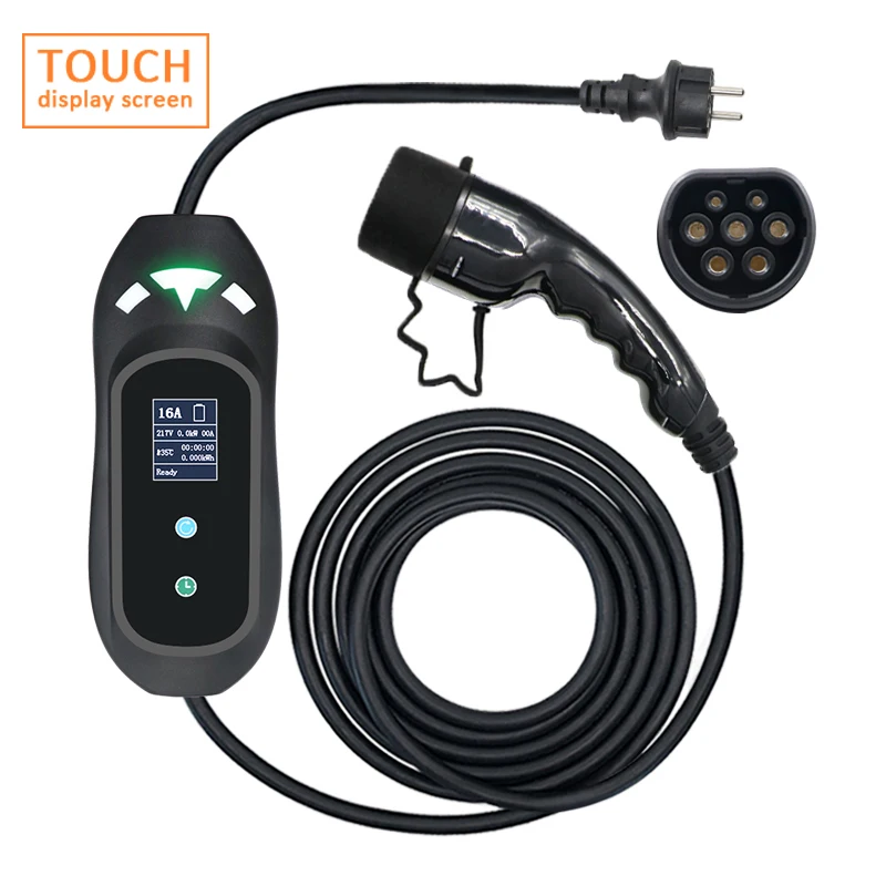 Автомобильное зарядное устройство с сенсорным дисплеем, 16 А, 1 фаза, 5 м, кабель для зарядки автомобиля