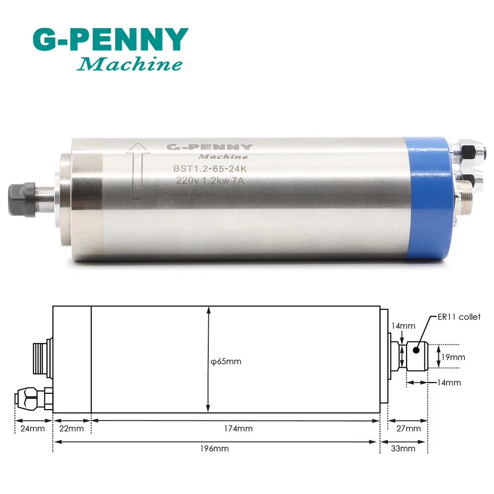 Номер модели1.2KW ER11 D65 Water Cooled Spindle