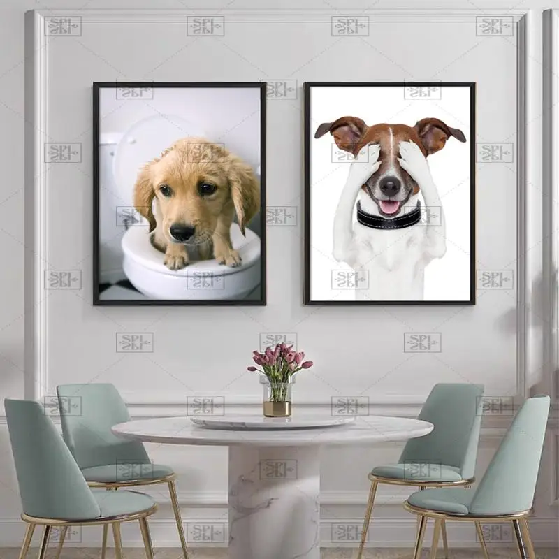 Креативная настенная подвесная картина, милая собака, животное, сидите на унитазе, аниме плакат и принты без рамки, декор для ванной комнаты, картина