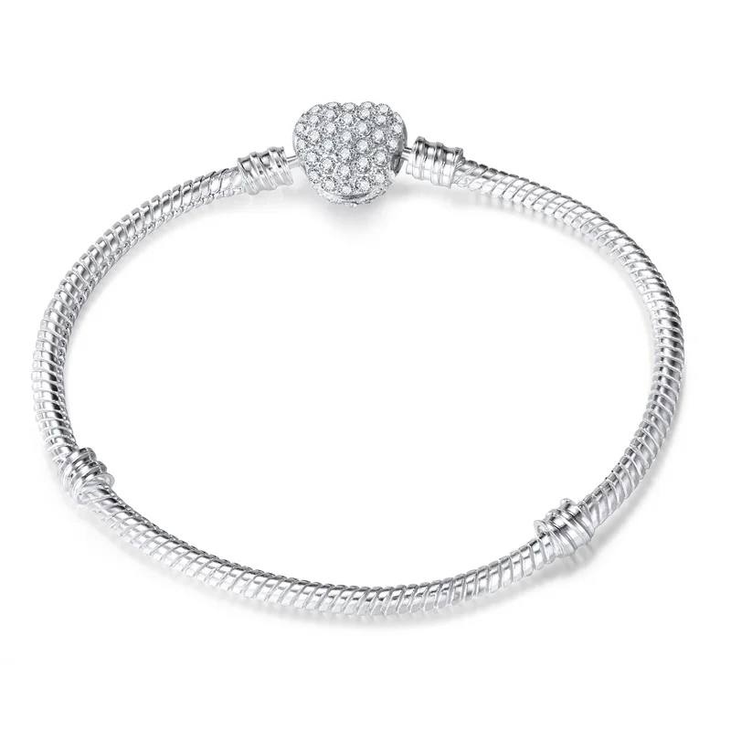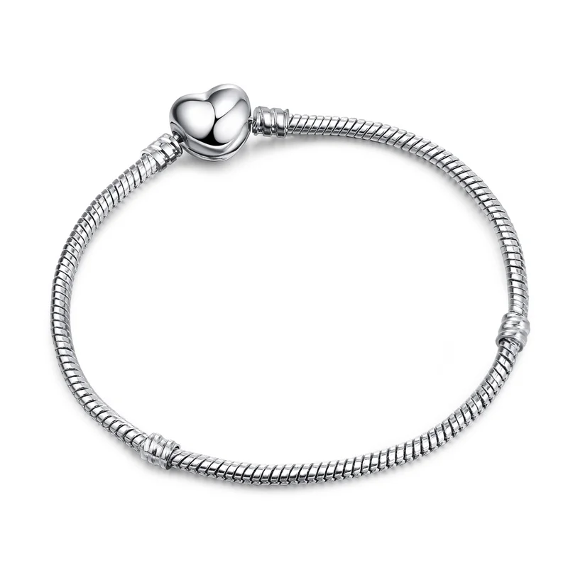 Новый классический браслет с застежкой в виде сердца и змеиной цепочкой, оригинальный европейский браслет Pandora, ювелирное изделие для женщин, подарок на день рождения