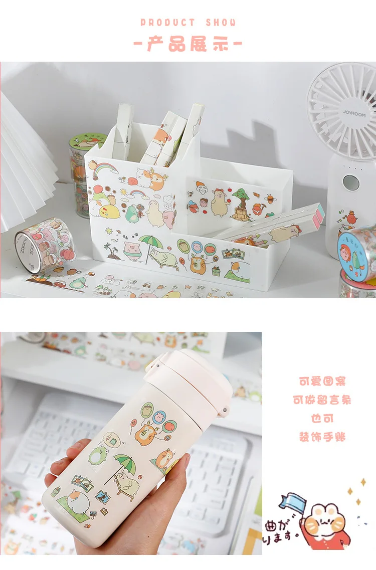 Мультяшная самоклеящаяся лента Washi, милая лента шириной 35 мм, Маскировочная прозрачная наклейка с рисунком животных, прекрасный подарок для журнала, дневника
