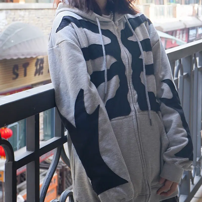 QWEEK, толстовка на молнии со скелетом, Женский Готический Топ, ули...