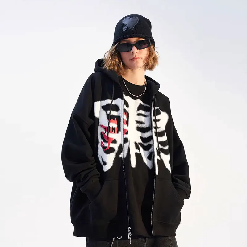 Женские худи на молнии Y2K Harajuku, свободные худи с принтом череп...