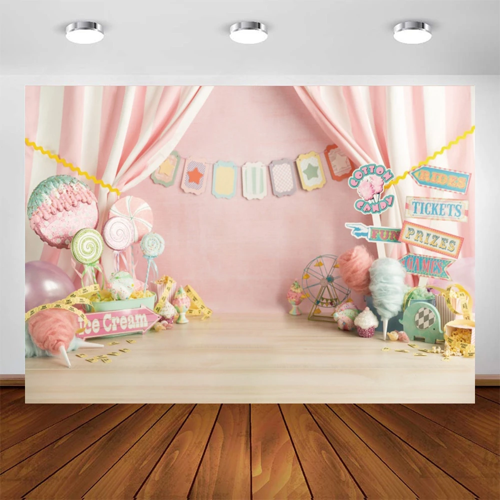 Фон для фотосъемки новорожденных с изображением мороженого торта ко...