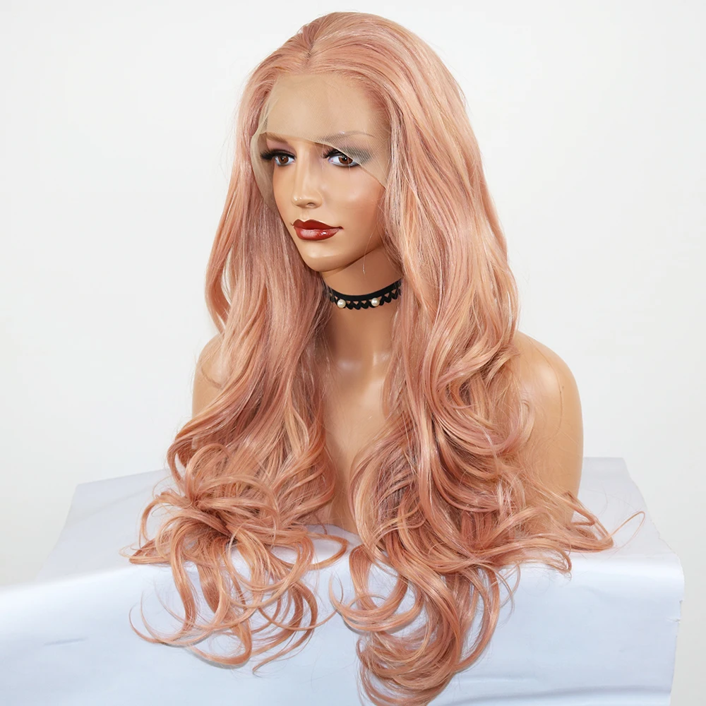 Парик женский длинный синтетический, Фэнтезийный светло-розовый с волнистыми волосами спереди 26 дюймов, для повседневной носки, косплея, Лолита
