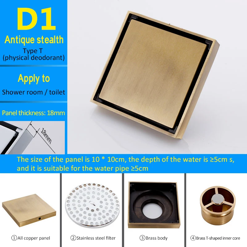 Медный душевой трап для дренажа пола в ванной, вставка для плитки, ...