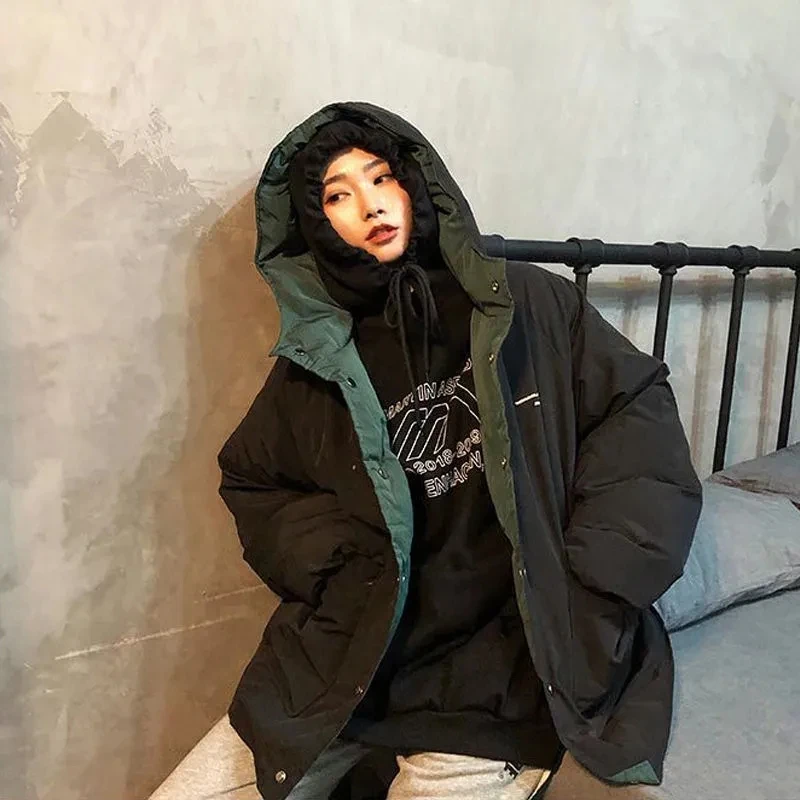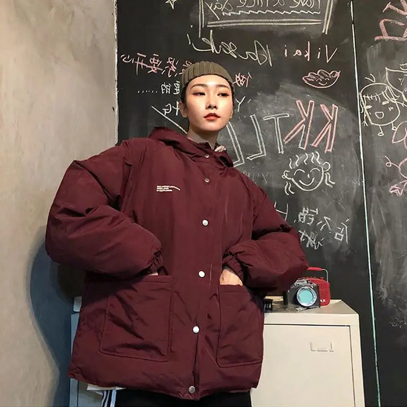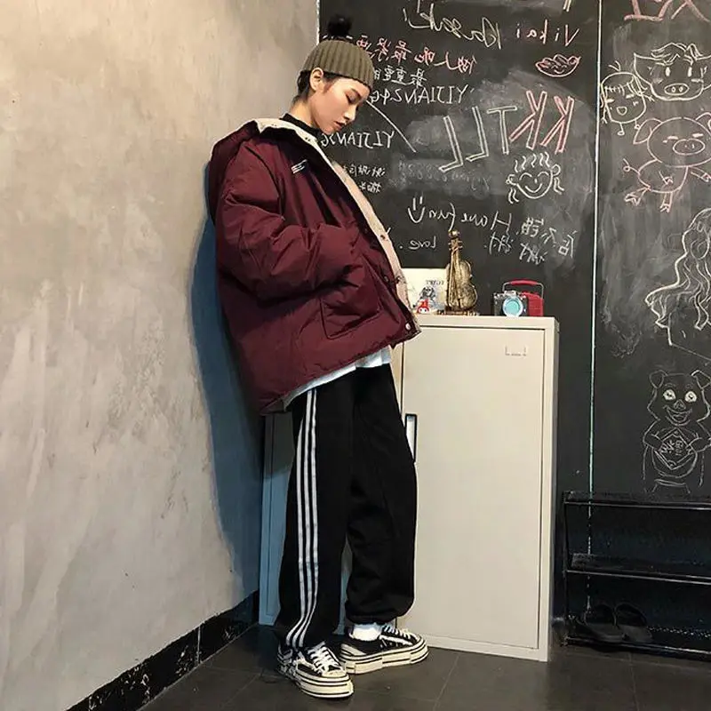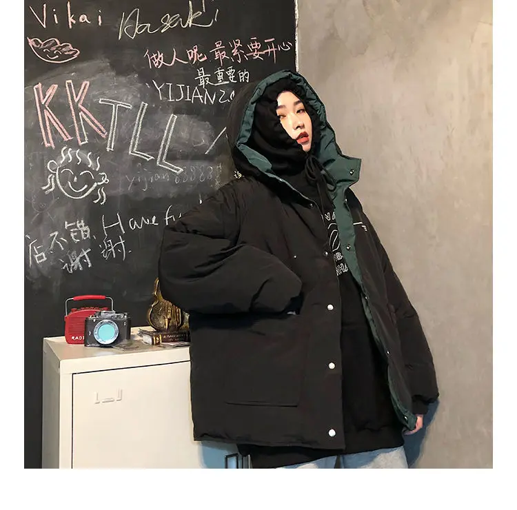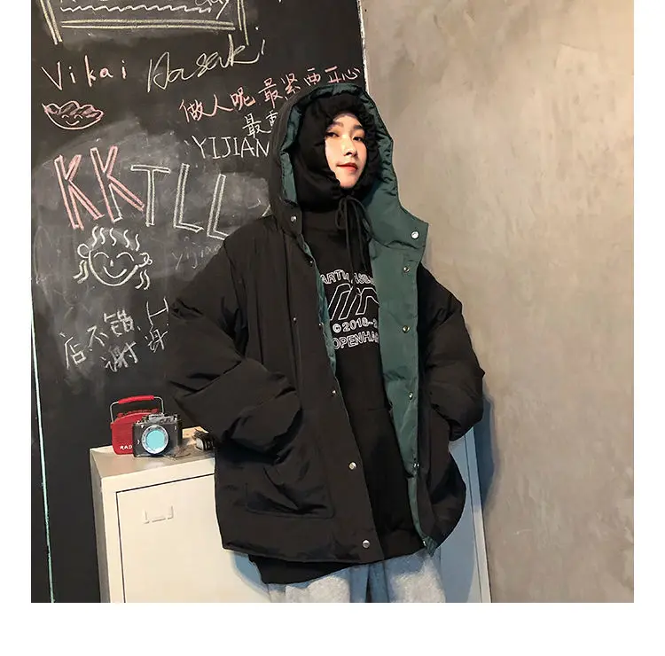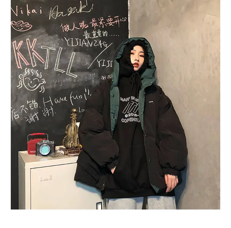 Женское толстое пальто, двусторонняя стеганая куртка для инструментов, новинка 2021, Женская универсальная свободная теплая хлопковая Студенческая куртка в стиле Харадзюку