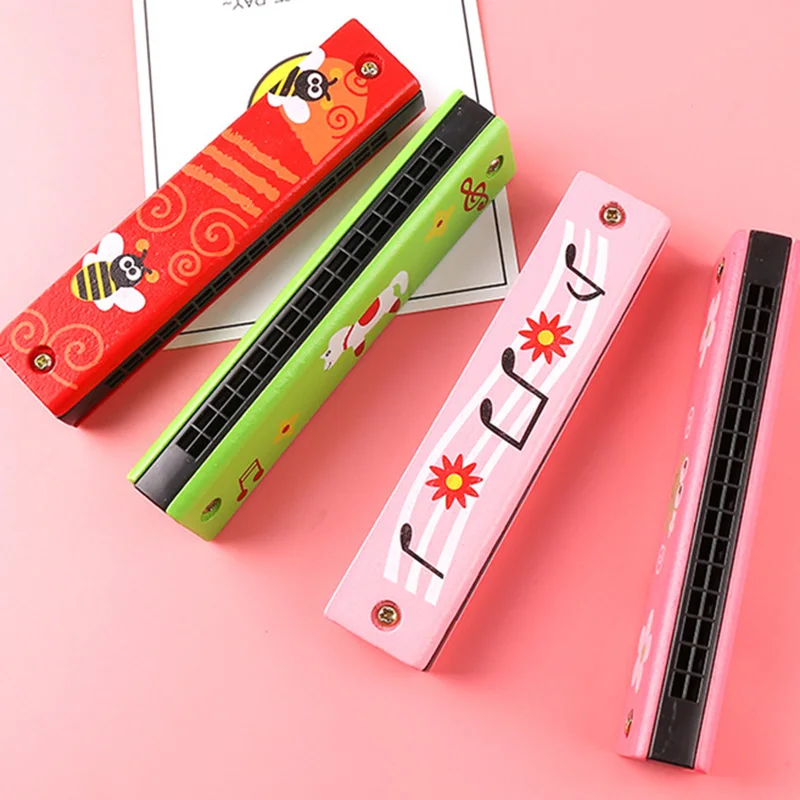 Красивые и красочные узоры, напечатанные на деревянной губной гармошке, пластиковой Секции по центру, легкие и портативные, эта деревянная Губная гармошка-лучшие музыкальные развивающие игрушки для детей.