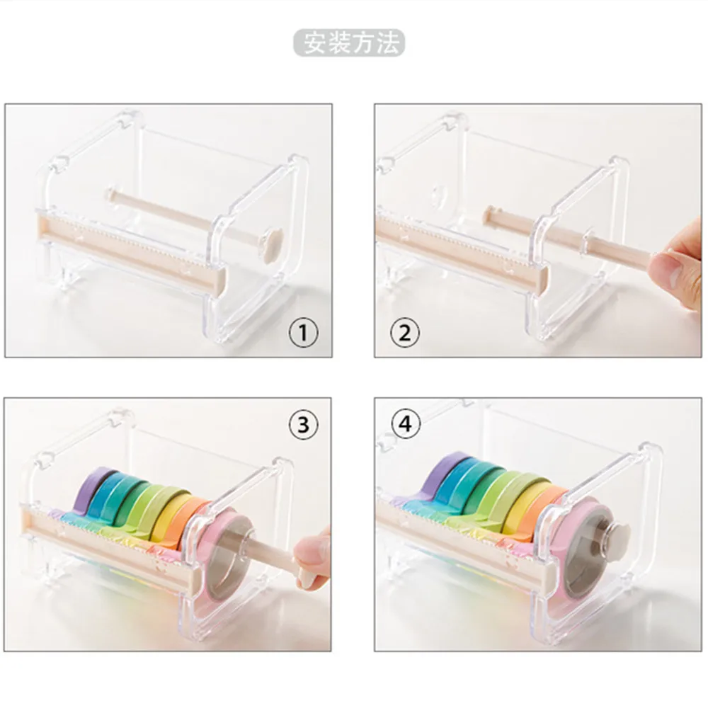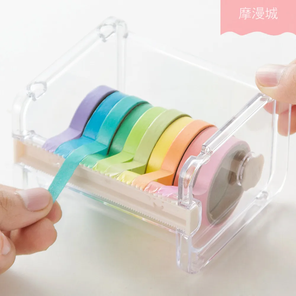Органайзер для хранения ленты Washi, 1 шт., резак, японские канцелярские принадлежности, резак для малярной ленты, диспенсер для офисной ленты, канцелярские принадлежности и 20 рулонов, красочные ленты Washi