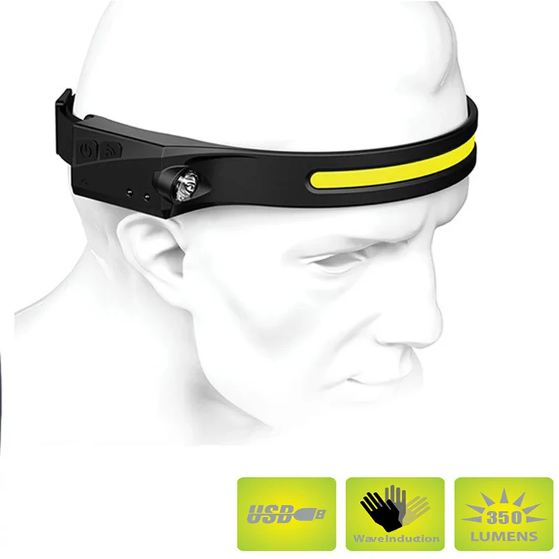 Светодиодный головной фонарь COB с датчиком и аккумулятором, фонарь с аккумулятором и зарядкой от USB, Головной фонарь с 4 режимами освещения для езды на велосипеде