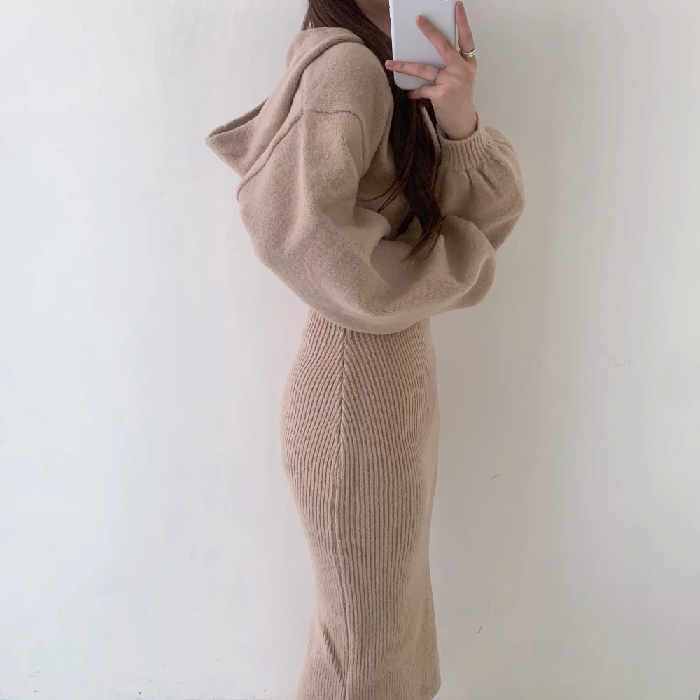Женское трикотажное платье-свитер с капюшоном и длинным рукавом