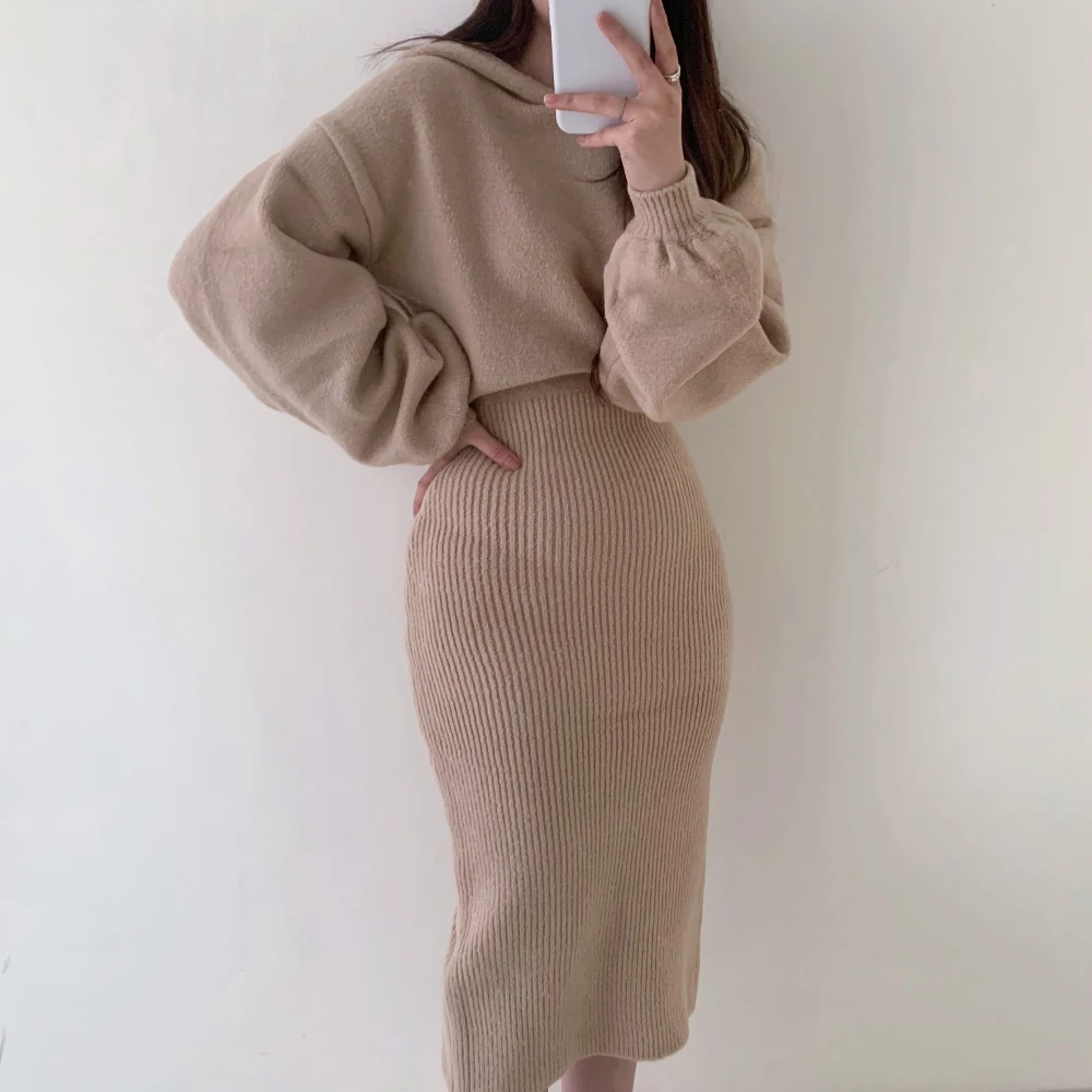 Осеннее вязаное платье SHIJIA абрикосового цвета, женское элегантно...