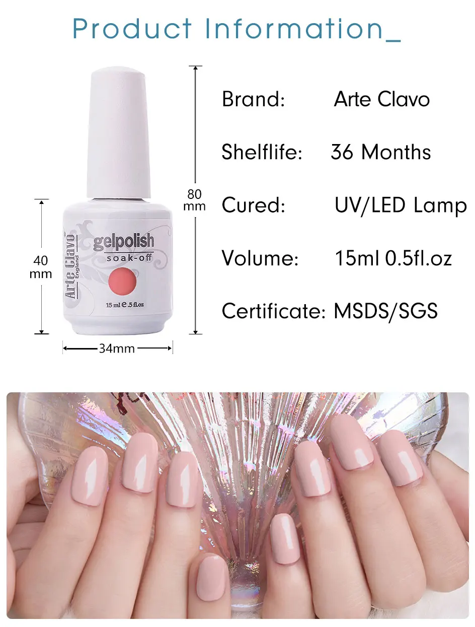 Комплектация:Arte Clavo 1 бутылка 15 мл красочный гельОсобенности:100% Новинка в розницу и высокое качество.Подходит для нанесения на УФ-гелевые ногти, акриловые ногти и натуральные ногти и т. Д.Укрепляйте ногти с помощью прочного блестящего покрытия.Идеально подходит как для профессионального, так и для личного использования.Профессиональное использование:Шаг 1: форма ногтя и полировка поверхности ногтевой пластины.Шаг 2: нанесите тонкий слой основного покрытия и вылечите под УФ/светодиодной лампой.Шаг 3: Нанесите слой УФ-геля и вылечите под УФ-/светодиодной лампой. (Повторите этот шаг, пока вы не будете удовлетворены эффектом)Шаг 4: не протирайте гель верхнее покрытие и вылечивайте под УФ/светодиодной лампой.