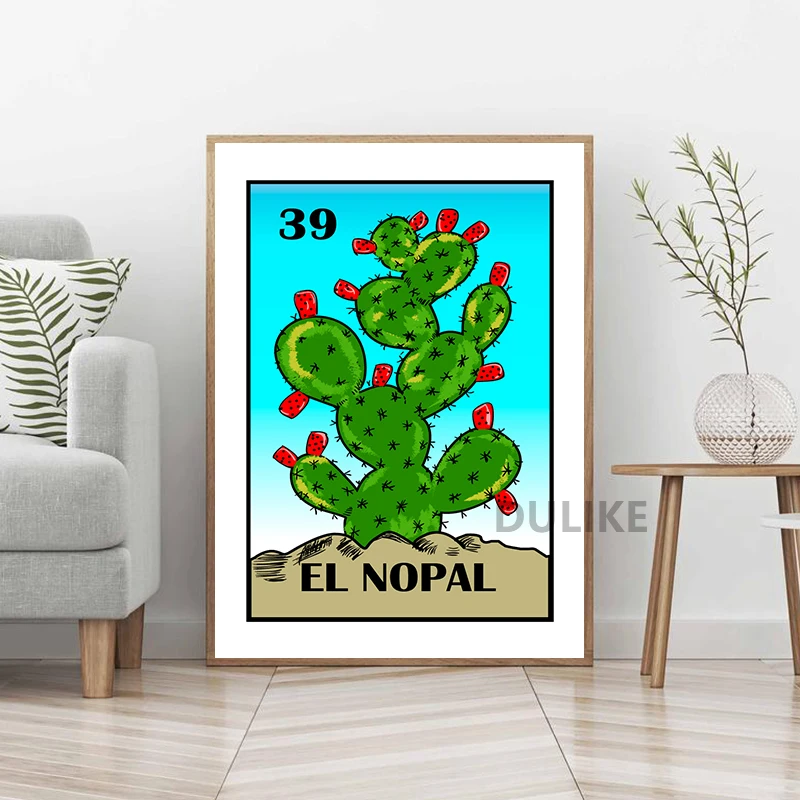 Кактус Художественная печать El nopal Мексиканская лотерия настенная Картина на холсте растительный постер растения суккуленты принты домашний декор для комнаты