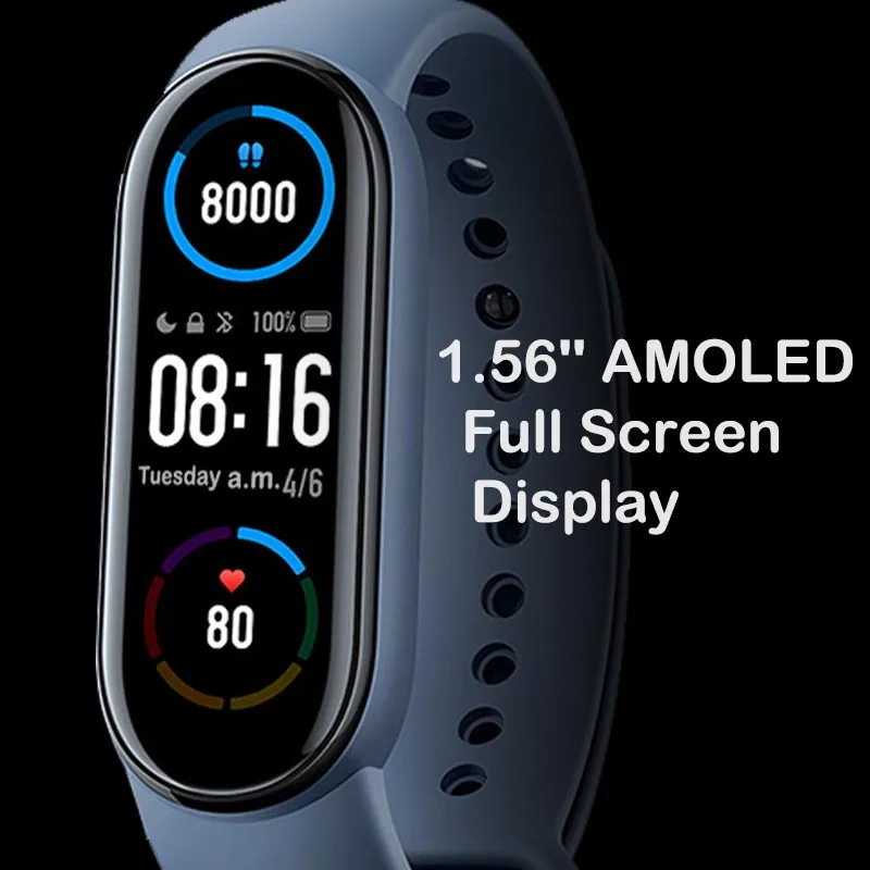 Xiaomi Mi Band 6 глобальная Версия смарт-браслет 5 цветов AMOLED экран фитнес-трекер с кислородом крови Bluetooth водонепроницаемый смарт-браслет