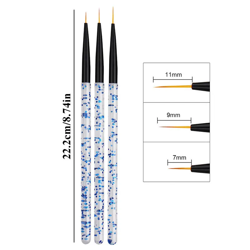 100% новый и высокое качествоЦвет: фиолетовый, синийКол-во: 3 шт./компл.Щетка Размеры: 7 мм, 9 мм, 11 мм (1 дюйм = 25,4 мм или 1 мм = 0,0393 дюйма)Посылка включает в себя: 3 шт. лака для ногтейИдеально подходит для кристаллов и УФ гель для ногтейСоздание красивых ногтей для долговечных сверкающих кончиков ногтей!Для рисования линий, тонких деталей, цветов, узоров и т. д.Идеально подходит как для профессионального использования, так и для личного использования!Пожалуйста, тщательно Стирайте его после использования, держите его чистым и безопасным для повторного использования!Примечания: из-за разницы между различными мониторами изображения могут не отражать фактический цвет изделия. Сравните размеры деталей с вашими, пожалуйста, учитывайте погрешность в 1-2 см из-за ручного измерения.Пожалуйста, оставьте сообщение, прежде чем дать плохие отзывы, если у товара есть какие-то проблемы. Спасибо за понимание.
