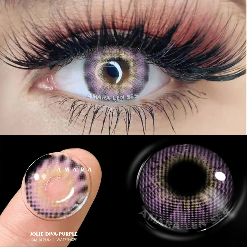 Цветные контактные линзы AMARA в год, 2 шт., Puipls, косметические цветные линзы, цветные контактные линзы для глаз, контактные линзы для глаз, красота, макияж