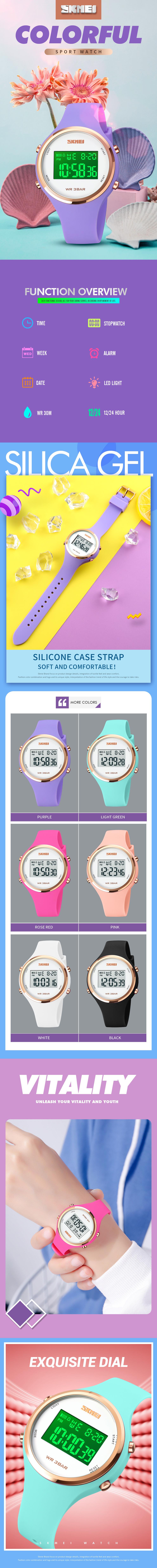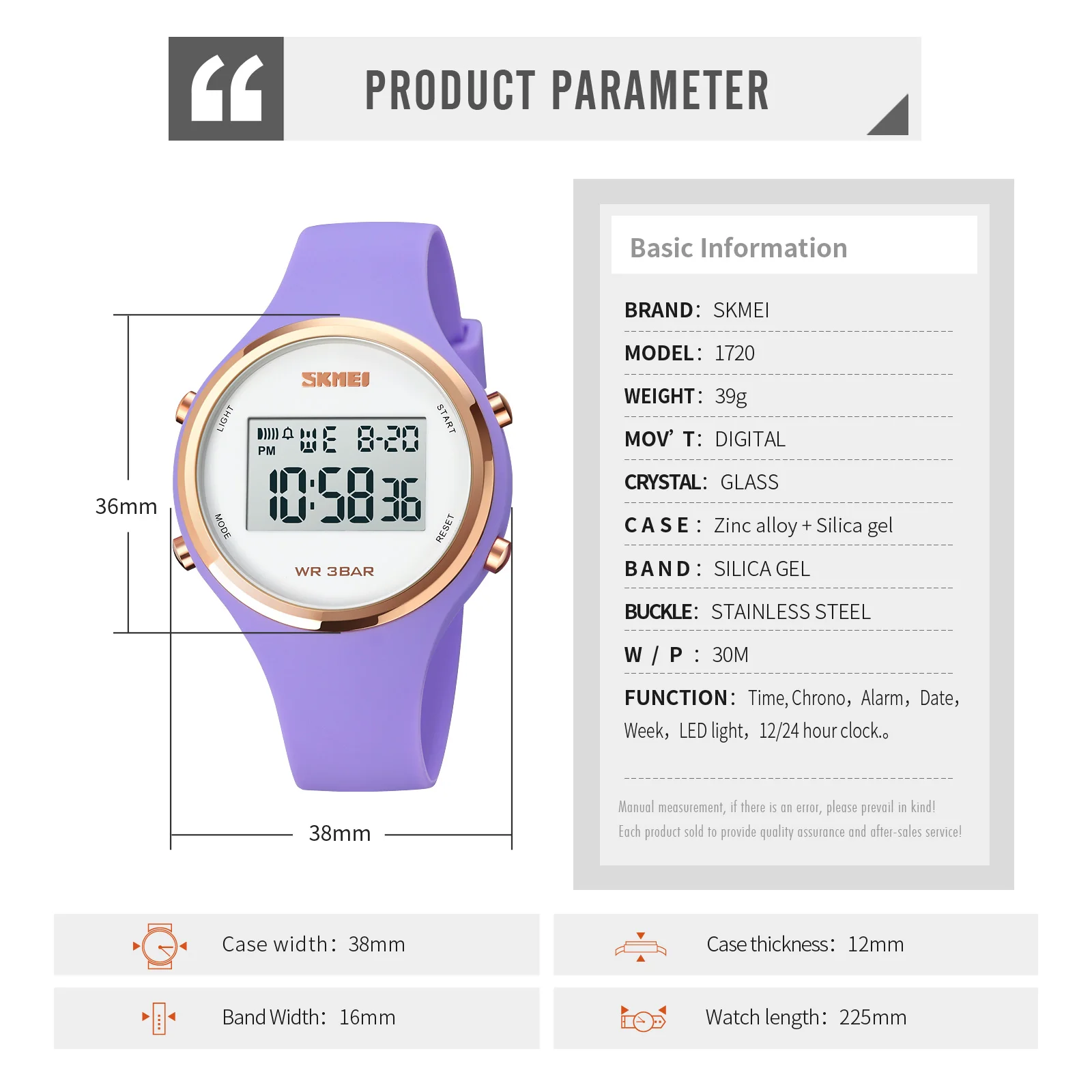 Часы skmei Женские электронные с ЖК-дисплеем, брендовые модные цифровые с хронографом и будильником, фиолетовые черные, 1720
