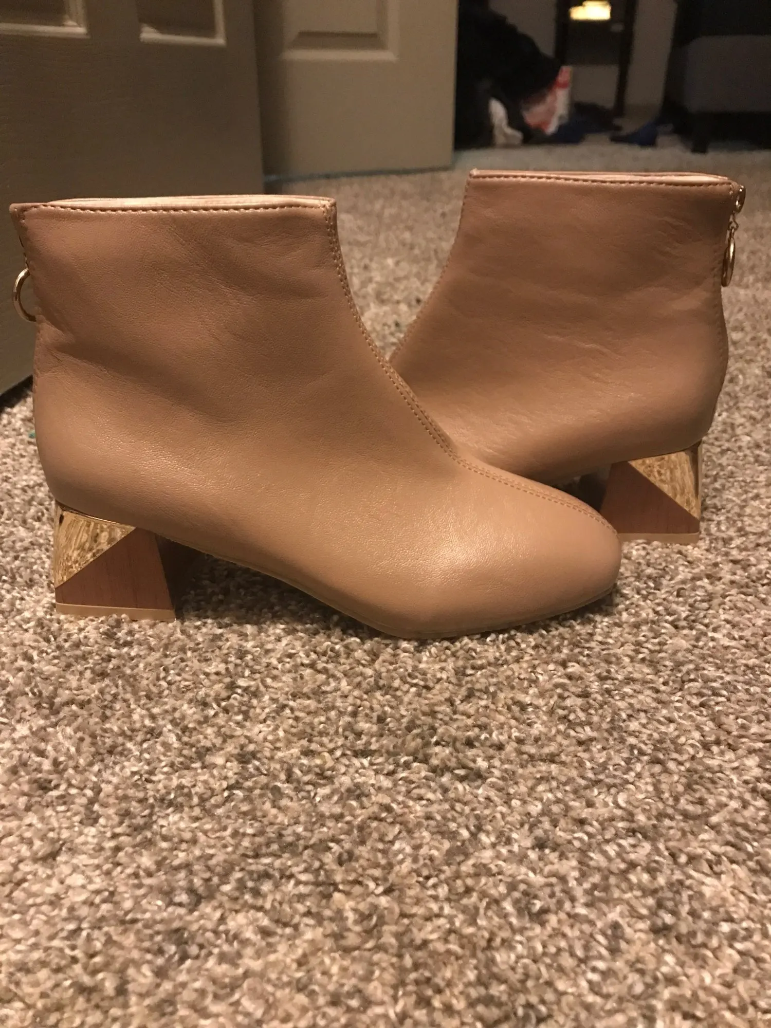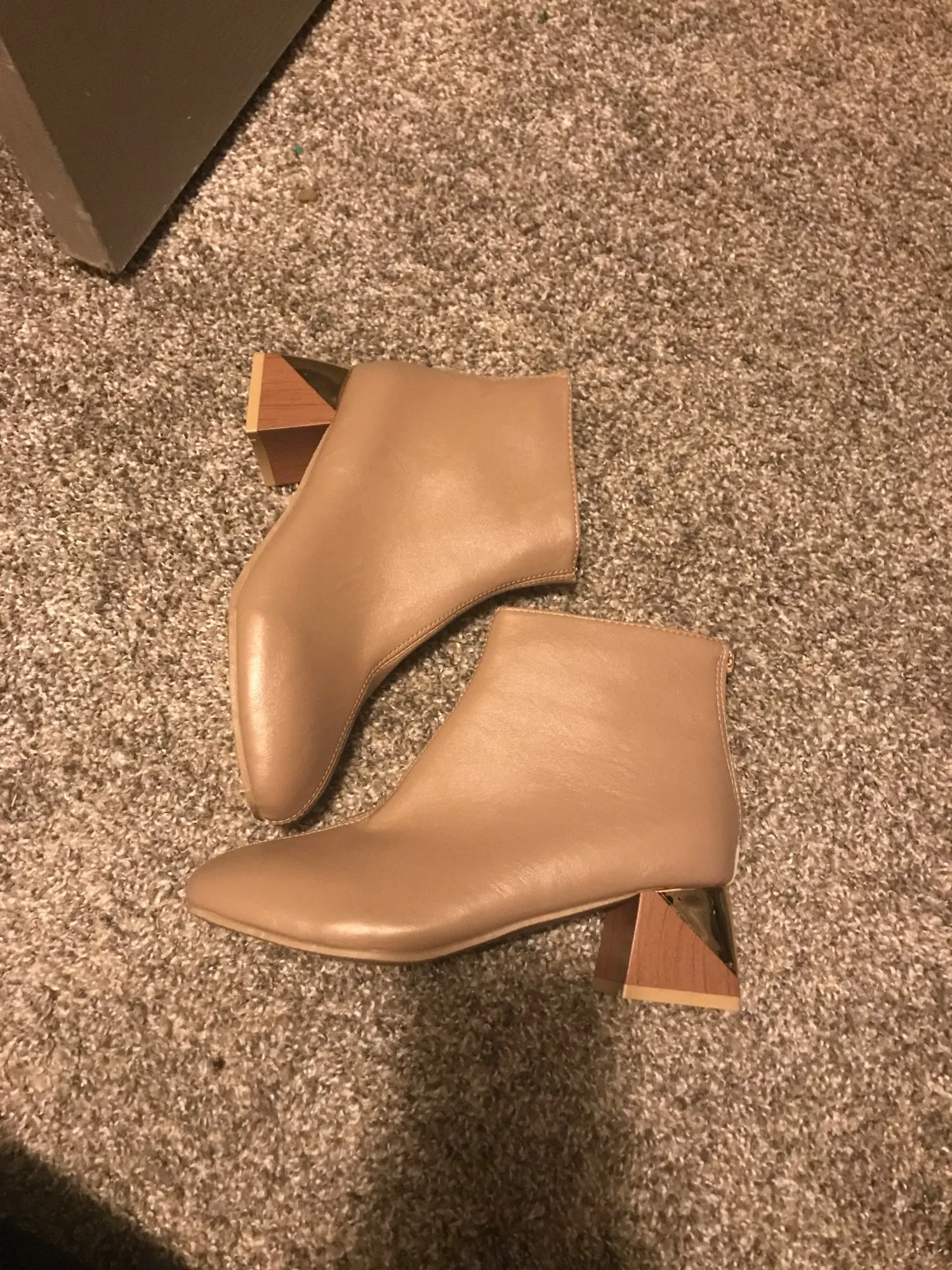 Роскошные Брендовые женские бежевые ботильоны на высоком блочном ка...