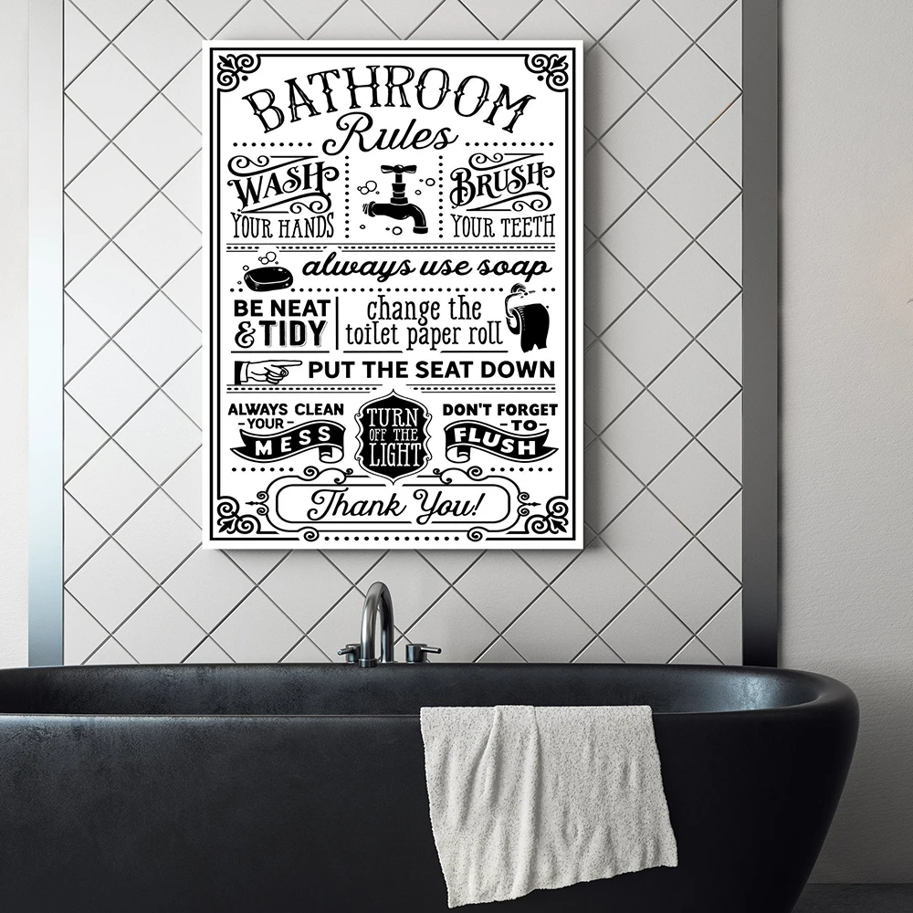 Забавные знаки правила в ванной, холст, плакат, поисковик слов, настенное искусство, цитата, картина, лучший туалет, Современная Юмористическая картина, домашний декор