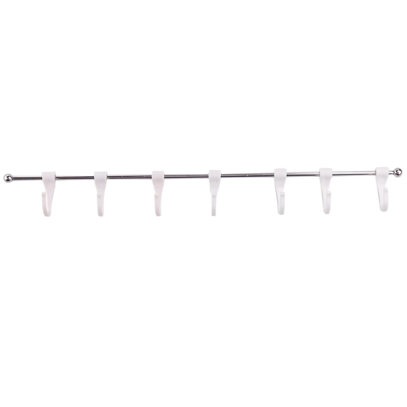 Простота использования: без сверления, без винтов, без следов на стене. Снимите заднюю часть и прижмите к стенеОн более прочный и экологичный, устойчив к коррозии.Прочная наклейка: клейкая подложка достаточно прочная для нагрузки 5 кг, но не оставляет следов после удаленияУниверсальность: в этом баре есть кухонная утварь, подходящая для полотенец, одежды, головных уборов, вы также можете подвесить сковородки, ложки для супа, лопатки и другую кухонную утварьЭкономия места: занимает мало места, но можно хранить столько же, очень полезно и практичноИспользование:Простая установка: см. Фото использования, чтобы узнать. (Примечание: обратите внимание на направление наклейки, когда вы приклеиваете ее к стене.)Очистите стену полотенцем, чтобы стена была сухой и чистой.Плотно прижмите подставку к стене в течение 30 секунд.Подождите 1 час перед использованием. Это позволяет склеиванию клея достичь максимальной прочности.Цвет: прозрачный, серебристыйМатериал: АБС-пластик, нержавеющая стальРазмер: размер после установки: 42,5x7 см (Ш x Ш)Размер настенного крючка: 7,5x7 см (Д X Ш)Комплектация:6 * крючокВ комплект входит только указанное выше содержимое, другие продукты в комплект не входят.Примечание: светильник вая съемка и различные дисплеи могут привести к тому, что цвет товара на изображении будет немного отличаться от реального. Допустимая погрешность измерения +/- 1-3 см.