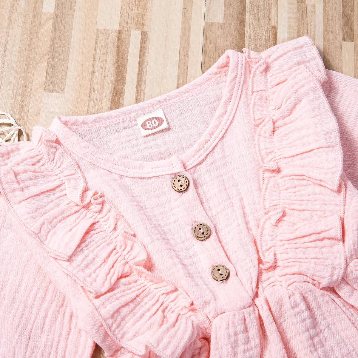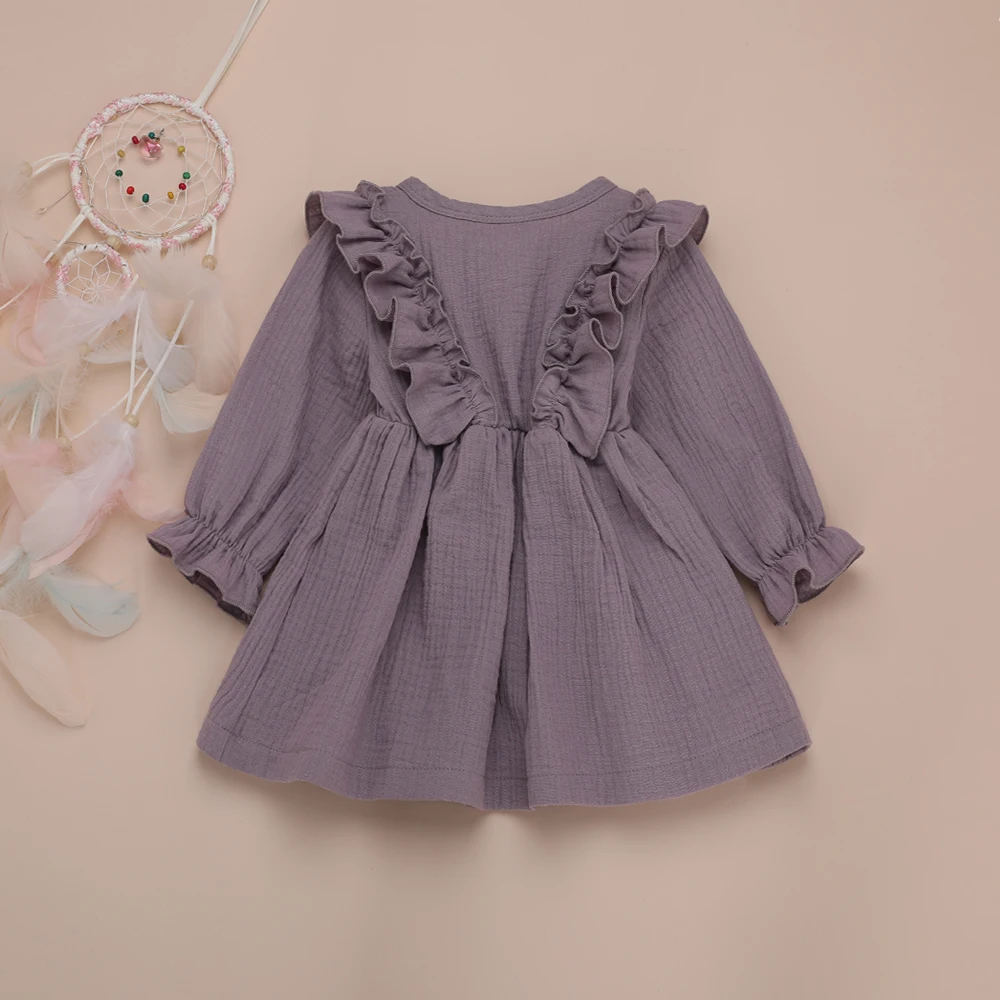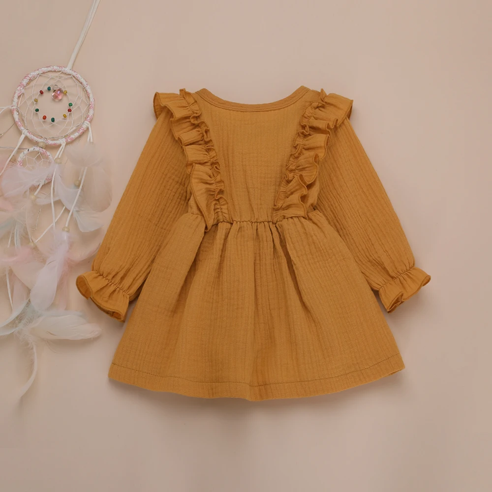 Платье для маленьких девочек Wallarenear, однотонная одежда, платье с длинным рукавом, платья из хлопка и льна