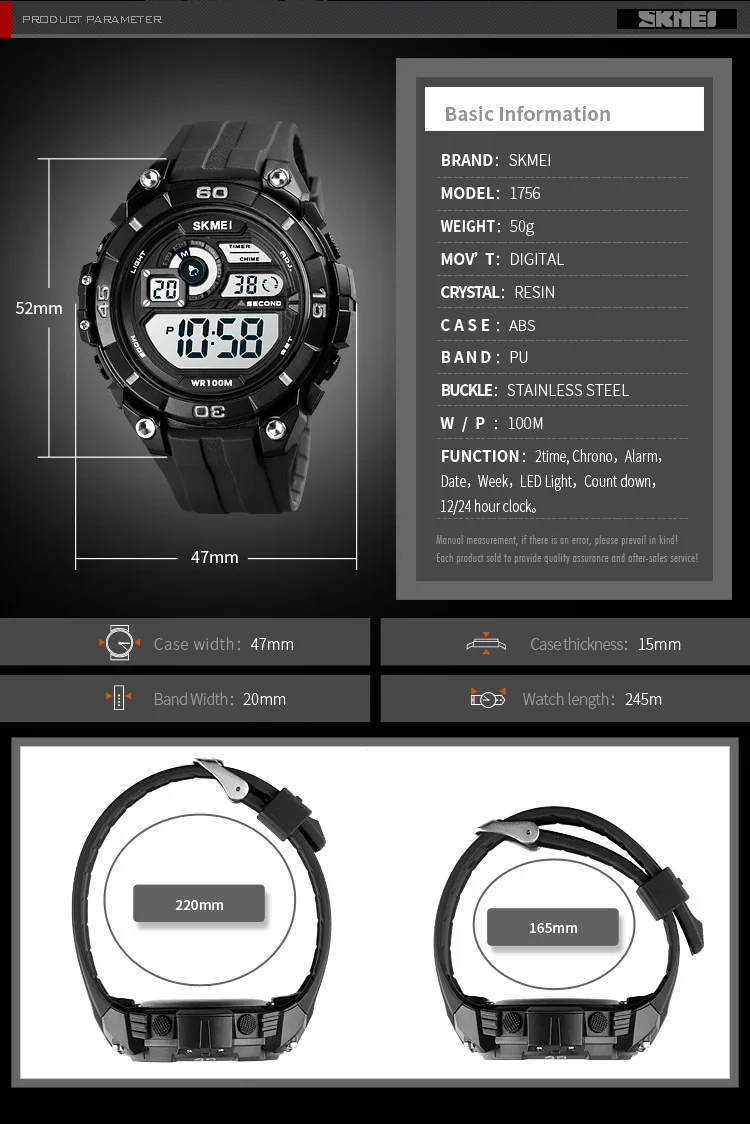 Часы наручные skmei Мужские Цифровые, повседневные водонепроницаемые брендовые винтажные светодиодные электронные спортивные, 100 м, 1756