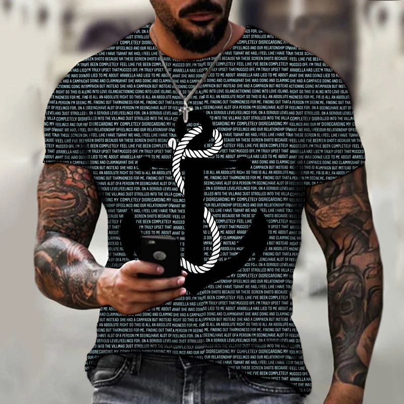 Футболка мужская с 3D-принтом якоря, модная уличная одежда в морско...