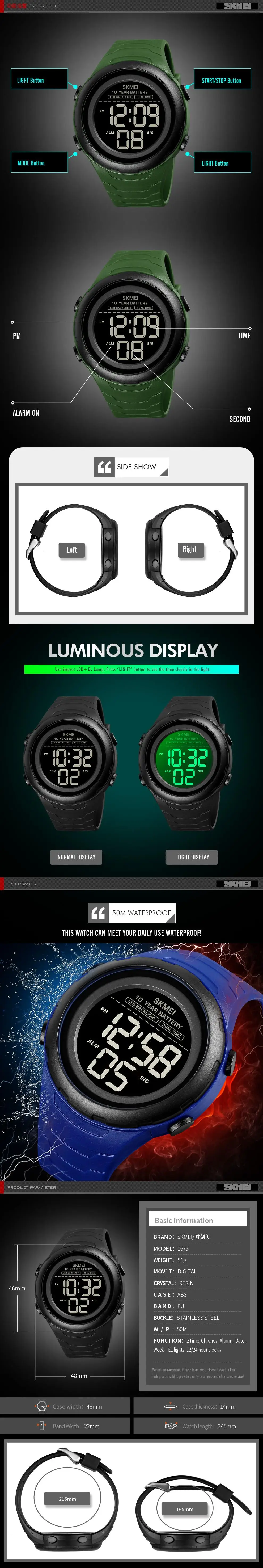 Часы мужские skmei, цифровые, водонепроницаемые, с 10 годами заряда батареи, секундомером, 50 м