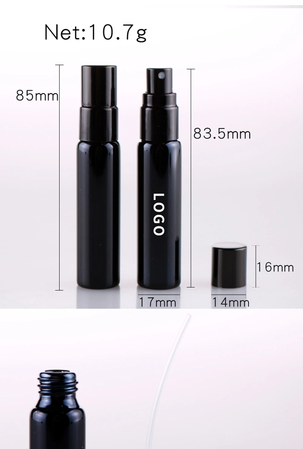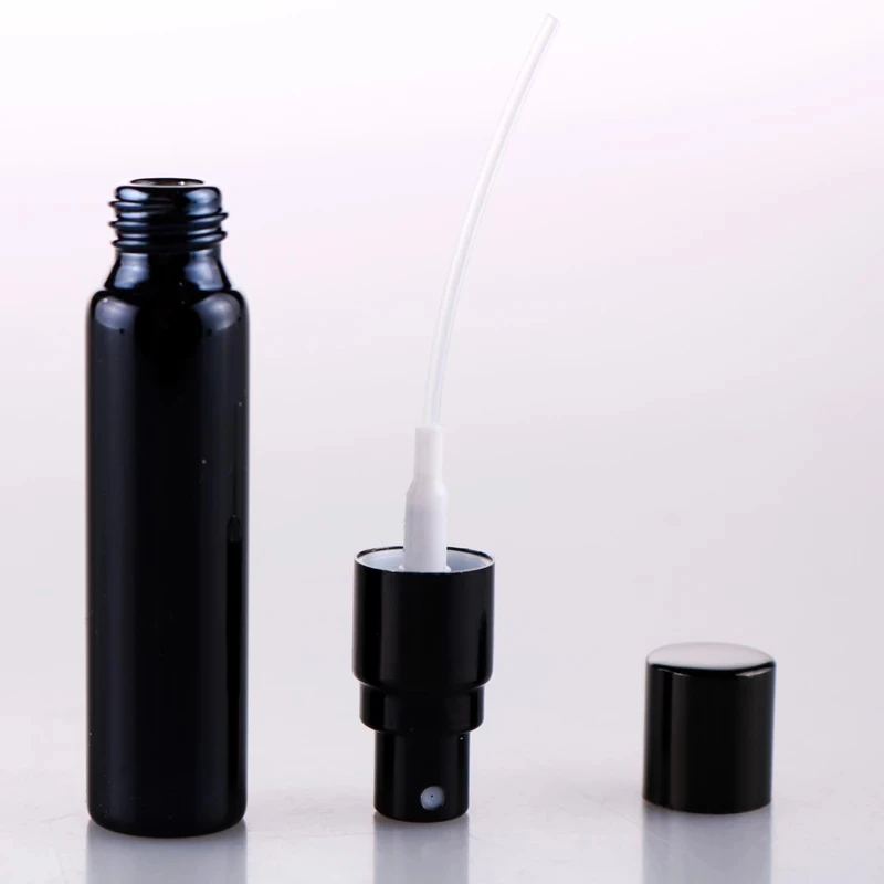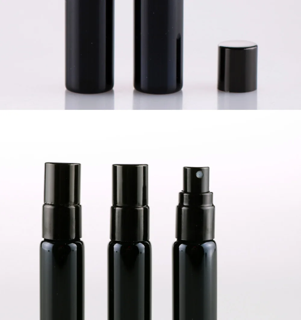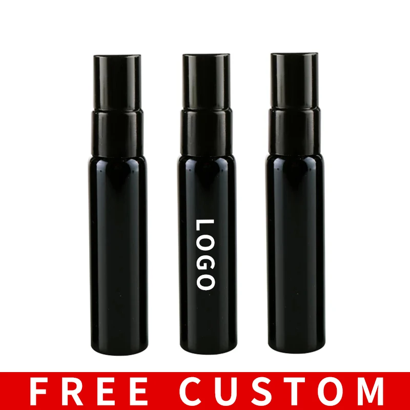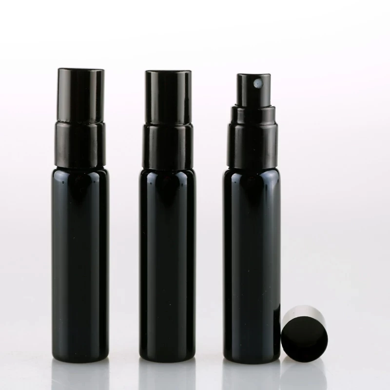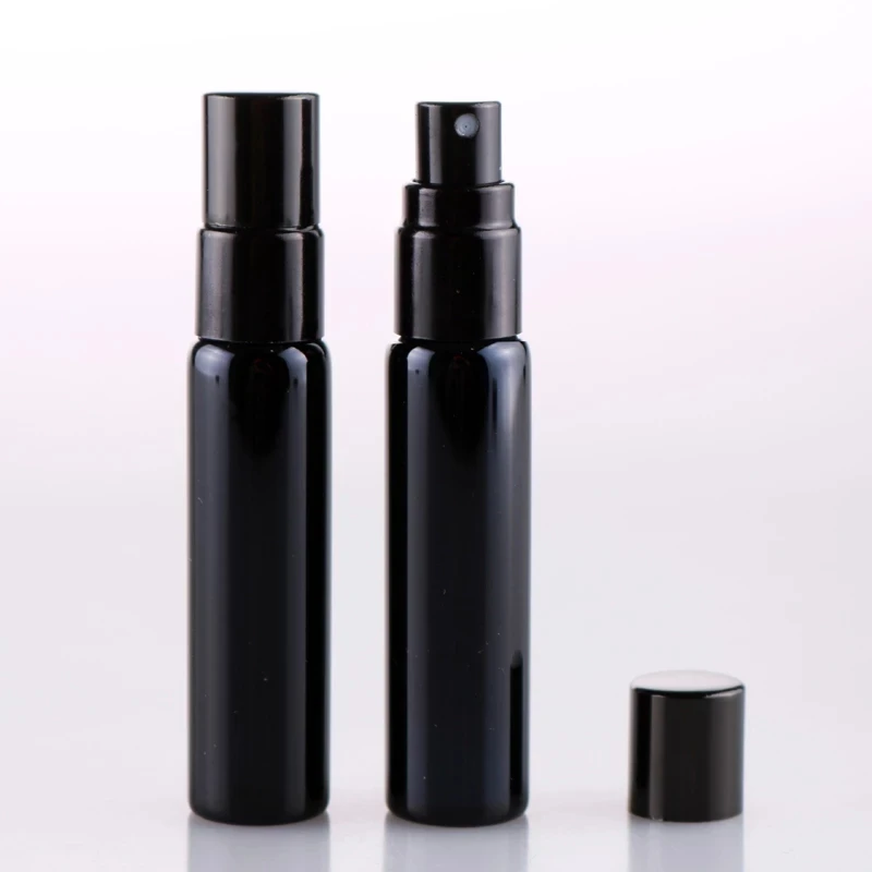 Оптовая продажа, 10 мл, портативный черный флакон для духов с ультрафиолетовым стеклом и черным распылителем, стандартная флакон для путешественников с бесплатным пользовательским логотипом