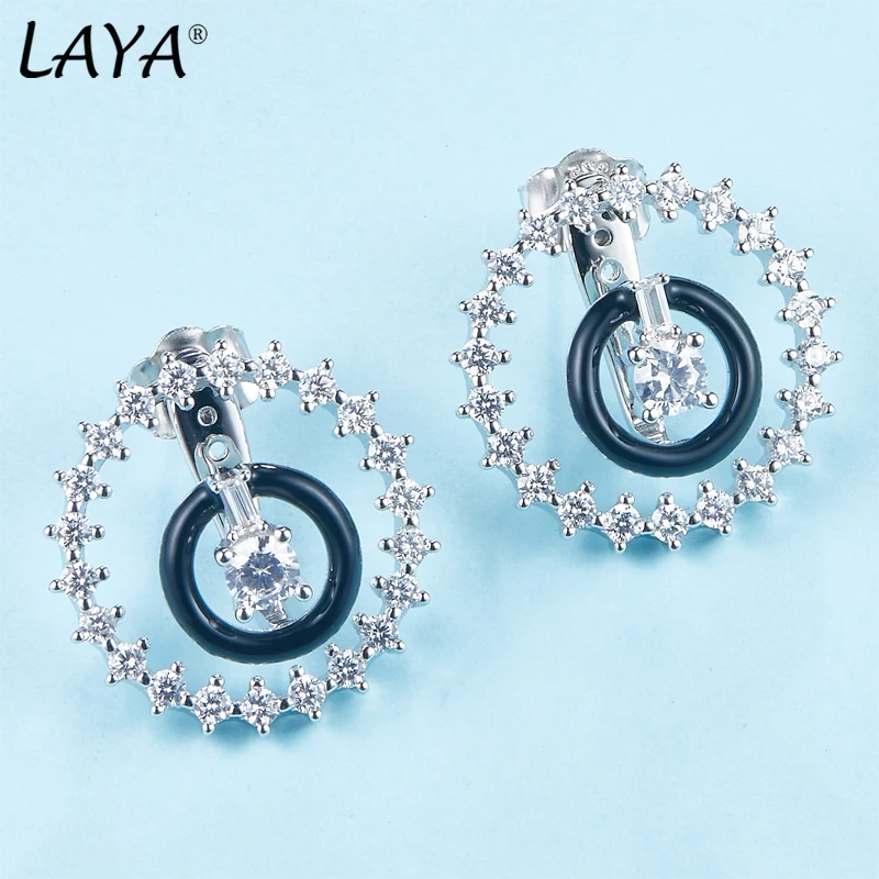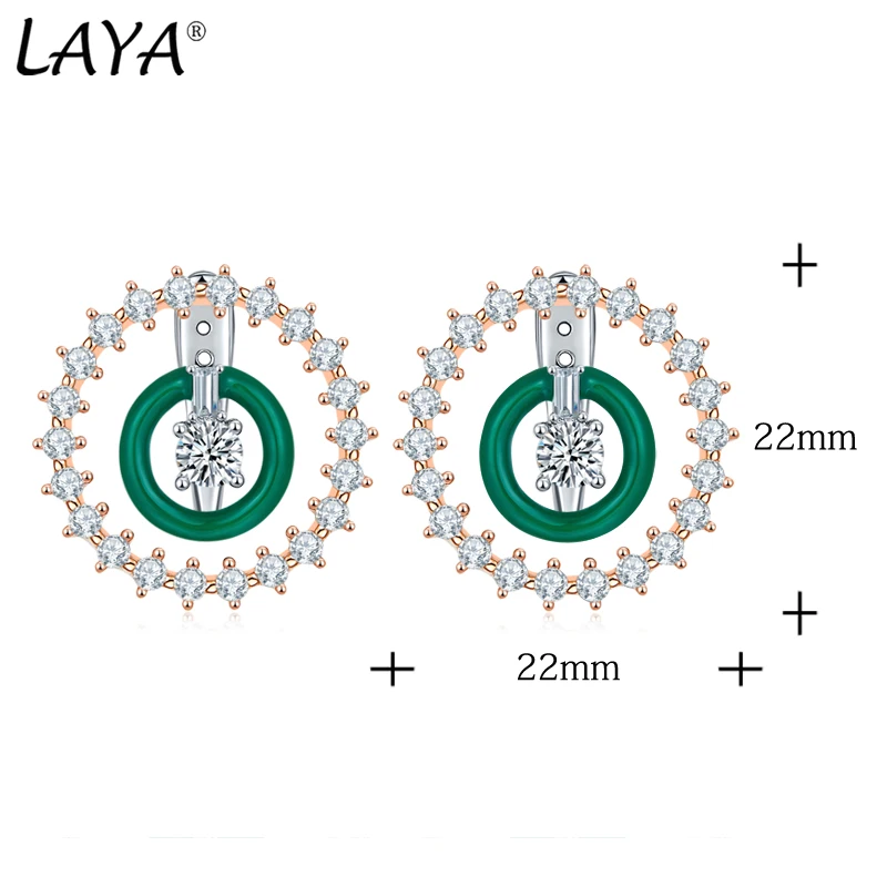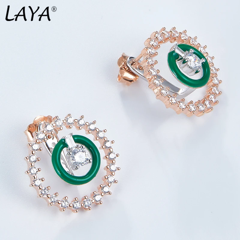 Laya стерлингового серебра 925 пробы модные новые высококачественные циркон двойной круг зеленые эмалевые серьги ручной работы для женских свадебных роскошных ювелирных изделий 2022 тренд