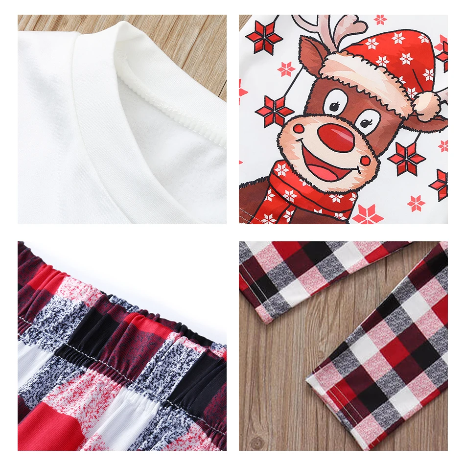 Коллекция 2021 года, Зимний Рождественский семейный пижамный комплект, Красная футболка с длинными рукавами и принтом + длинные штаны Мягкая Повседневная одежда «Мама и я»