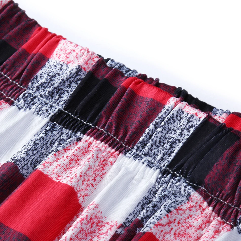 2021 зимняя Рождественская семейная сочетающаяся Пижама комплект Красная футболка с длинным рукавом с принтом + длинные брюки Мягкая Повседневная одежда для мамы и меня
