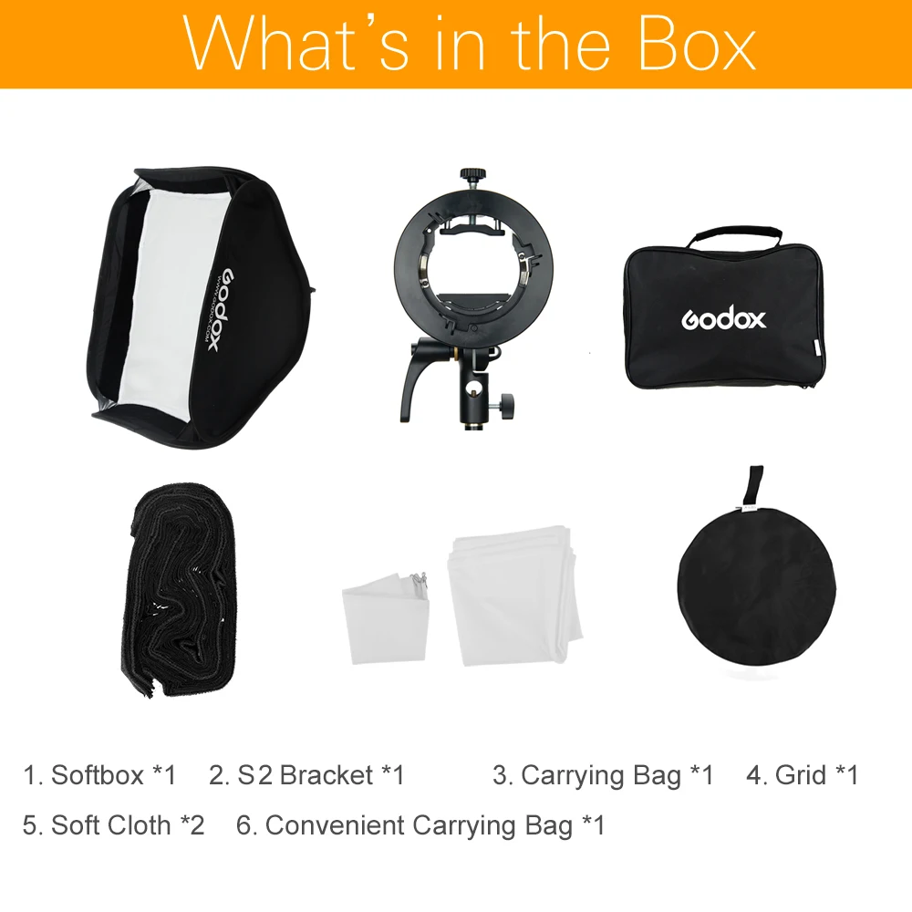 Складной софтбокс Godox 60x60 см, 24 х24 дюйма, с S-образным кроншт...