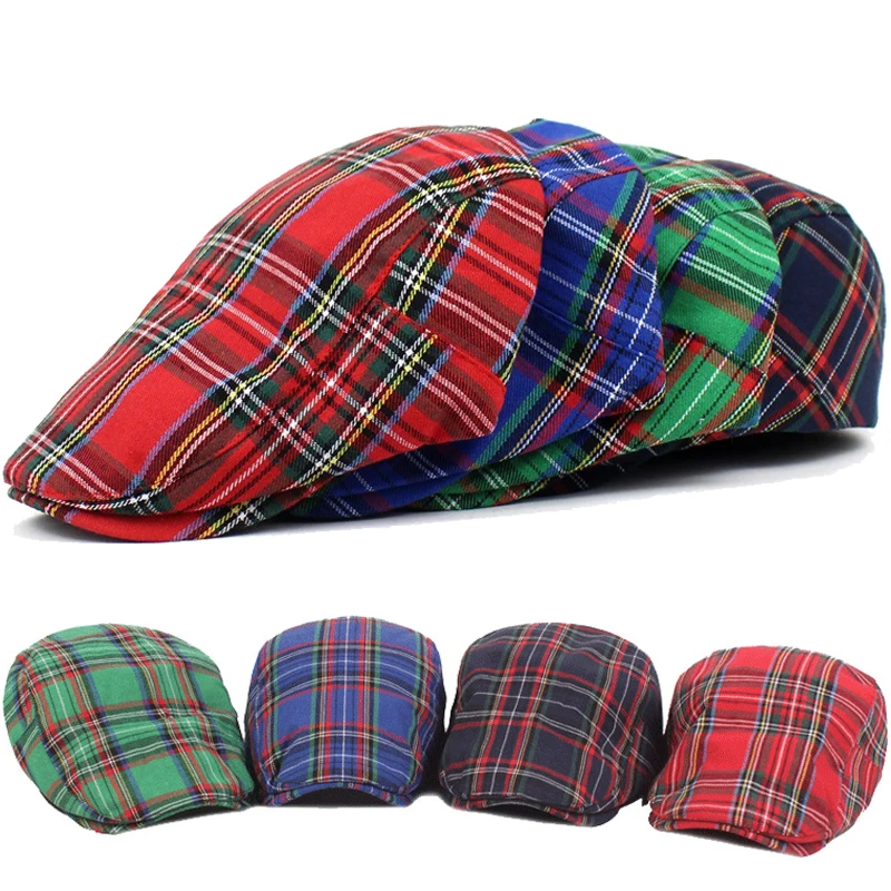 Шапка в французском стиле, клетчатый берет, Женская весенне-летняя хлопковая шапка в Ирландском, красном, зеленом цвете, с улыбающимися глазами, винтажная зимняя женская шапка для джентльменов