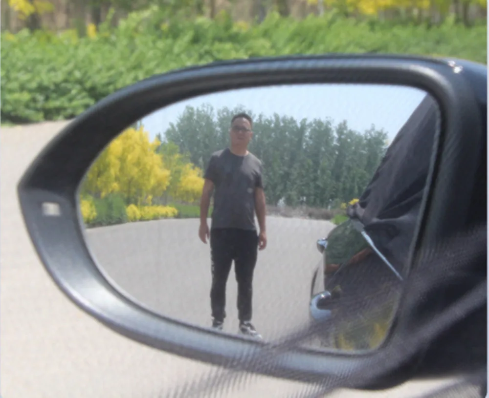 Не блокирует вид зеркала заднего вида, предназначенного для безопасности вождения