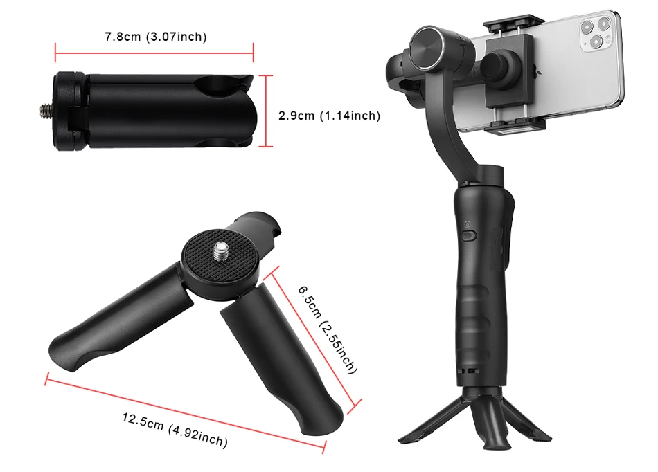 1. Поддерживает смартфоны весом до 8,1 oz / 200g, и до 6,35 "в высоту2. 320 ° панорамирования, 320 ° наклона и 300 ° рулона; Большой, cine-style фокус/зум-колесо с свидетельским знаком3. Эффект масштабирования Dolly Vertigo, несколько временных интервалов и выбор режима следования;4. До 12 часов время работы, возможность зарядки для телефона во время съемки, поддержка внешнего блока питания5. Используйте бесплатное загружаемое приложение ZY Play для контроля выбора функций iOS/Android6. Он поддерживает android 5,0 или более новый смартфон. И IOS. 10,0 или более новый (например, iphone 11 pro ,iphone6/7/8/s/plus,iphone X/Xs/Xr/Max)