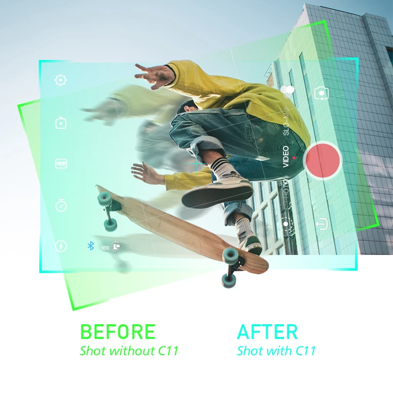 Оптимизированный C11 3-х осевая система стабилизации обеспечивает Ультра гладкая запись, в то время как вы areshooting на ходу, удаляя помех shaky рамки без каких-либо усилий.