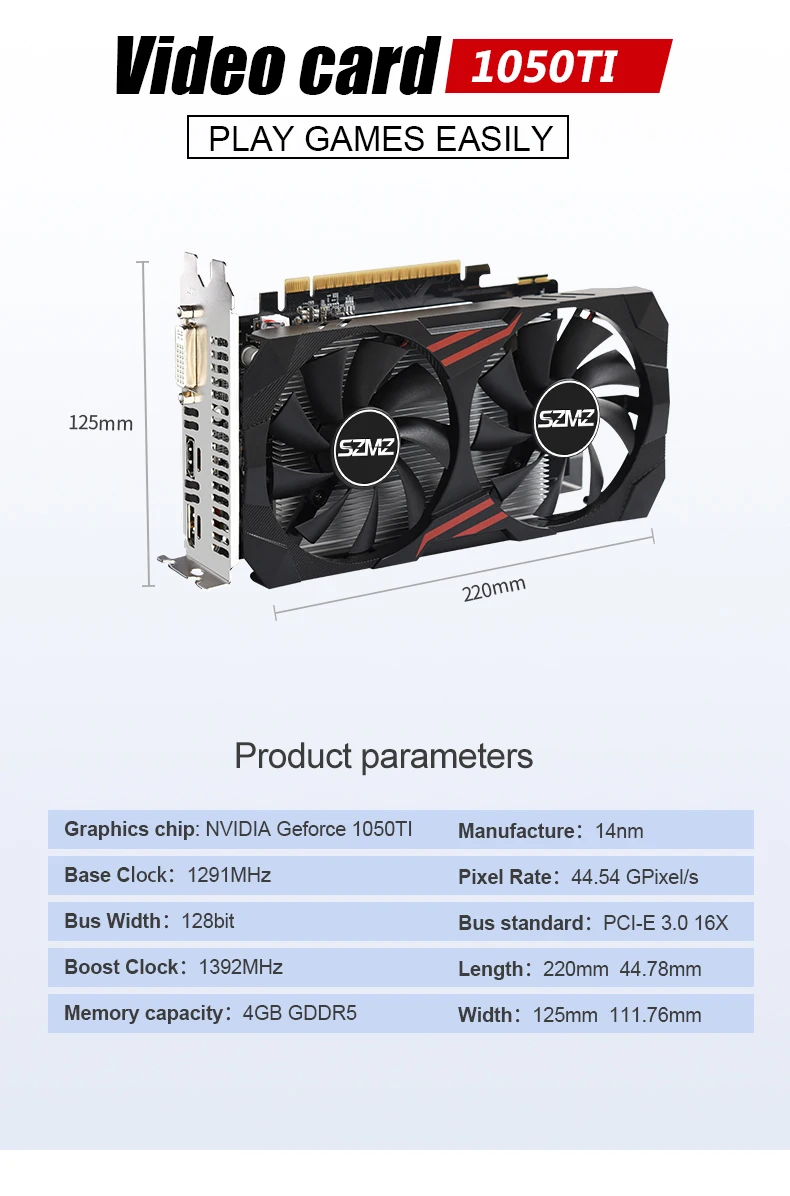 SZMZ видеокарта для компьютера, графическая карта PCI-E GTX1050Ti GPU 4G DDR5, оригинальная графическая карта 128 бит GDDR5 1050ti 4 Гб, видеокарта