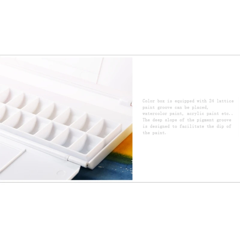K1AA 24 Сетка Складная увлажняющая Акварельная Палитра для художника Акварельная масляная краска для рисования палитра поднос коробка товары для рукоделияOOTDTYОсобенности: палитра идеально подходит для акварели, масла и других пигментов на водной основе, подходит для художников всех случаев живописи.Эта палитра имеет 24 небольших колодца, удобна и практична для художников, может быть заполнена акриловым, масляным, акварельным и гуашевым пигментом.С отверстием для большого пальца, портативный для переноски и Складная крышка поможет сохранить влагу ваших красок.Изготовлен из пластика, который прочный и легкий, поверхности достаточно гладкие, легко моются.Крышка коробки-это палитра, удобна для смешивания и приклеивания цветов.Спецификация: Тип: акварельная палитраСетка: 24 СеткиРазмер палитры: 262mmX12 2 мм/10.31x4.8 дюймовМатериал: пластикЦвет: белыйОсобенность: складнойПосылка включает в себя: 1 Акварельная палитраПримечание: Из-за проблем с световыми эффектами и углами съемки, в продукте будут определенные допуски, пожалуйста, поймите.Возможны отклонения в 0-1 см из-за измерения вручную.Благодаря пластиковой палитре, легко наносится вред, пожалуйста, не нажимайте на нее.