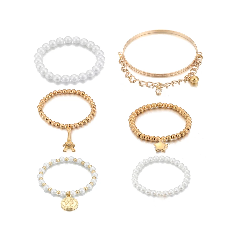 6 шт.компл. Enegant Жемчужный Камень башня бусины браслеты для женщин подвески звезда монета геометрический браслет ювелирные изделия аксессуары 5483