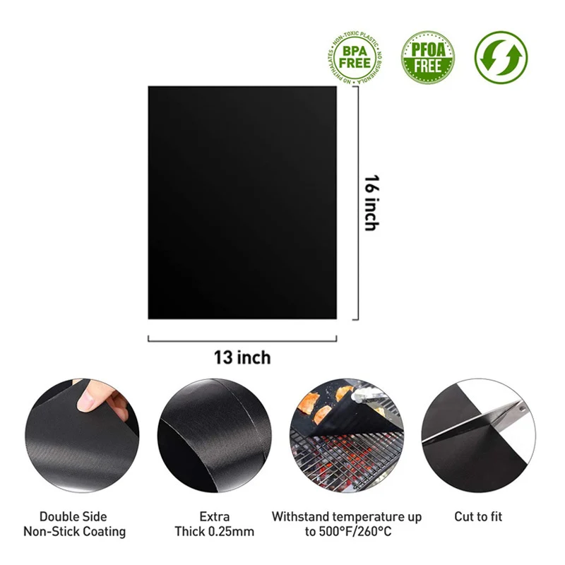 Название продукта: коврик для барбекюРазмер: 40*33 смМатериал: ткань из стекловолокна с покрытием из ПТФЭЦвет: черныйУпаковка: opp мешокДиапазон сопротивления высокой температуры: -70 ~ 260 ℃