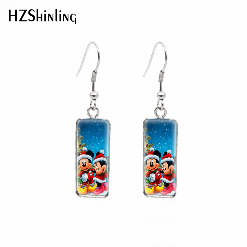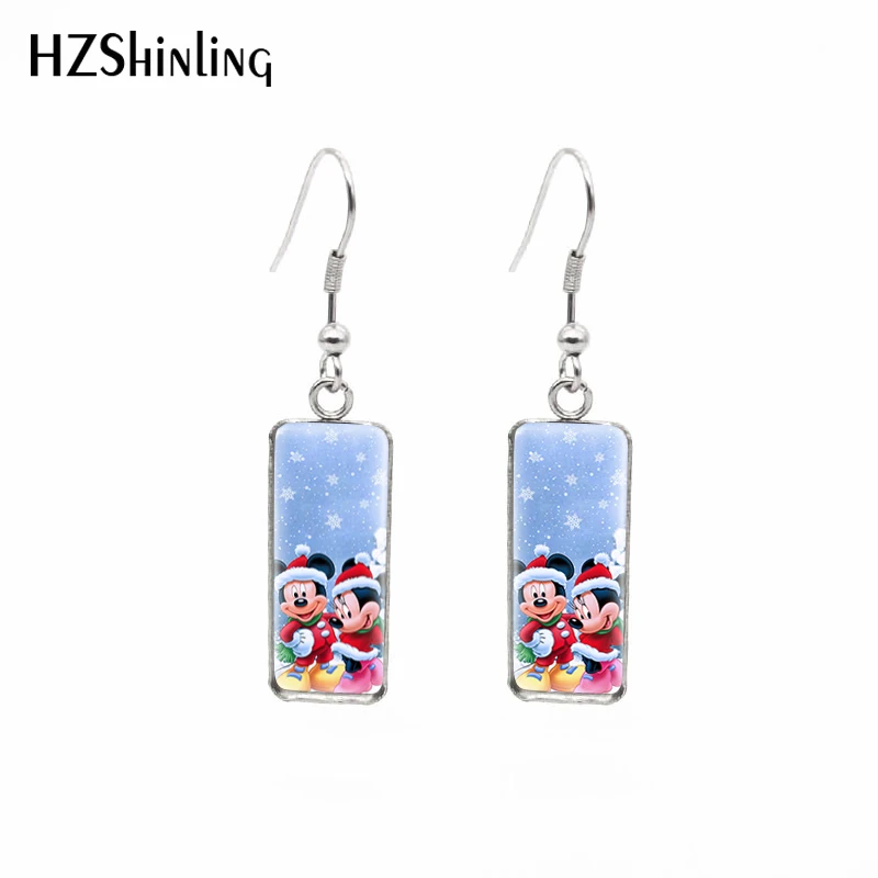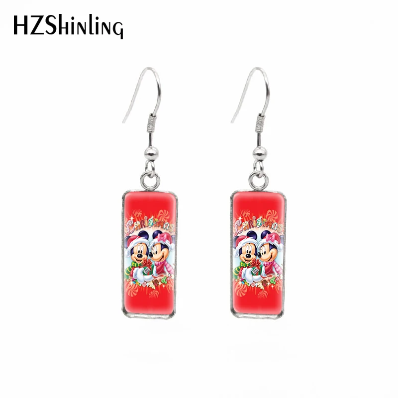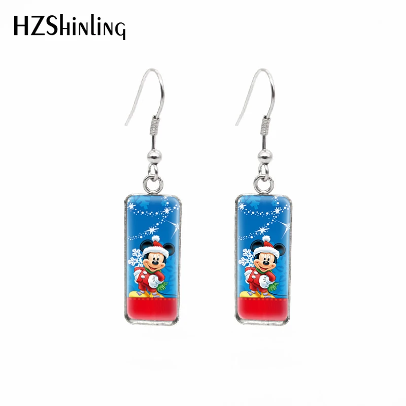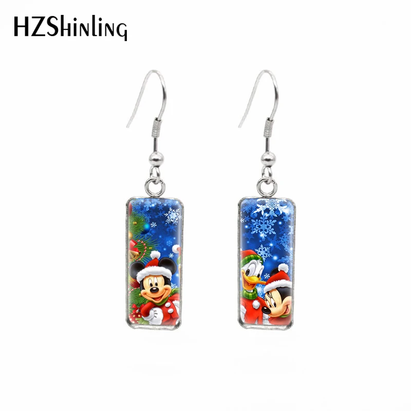 Счастливого Рождества Микки Маус Минни мультфильмы картины прямоугольный крючок Висячие серьги Модные ювелирные изделия